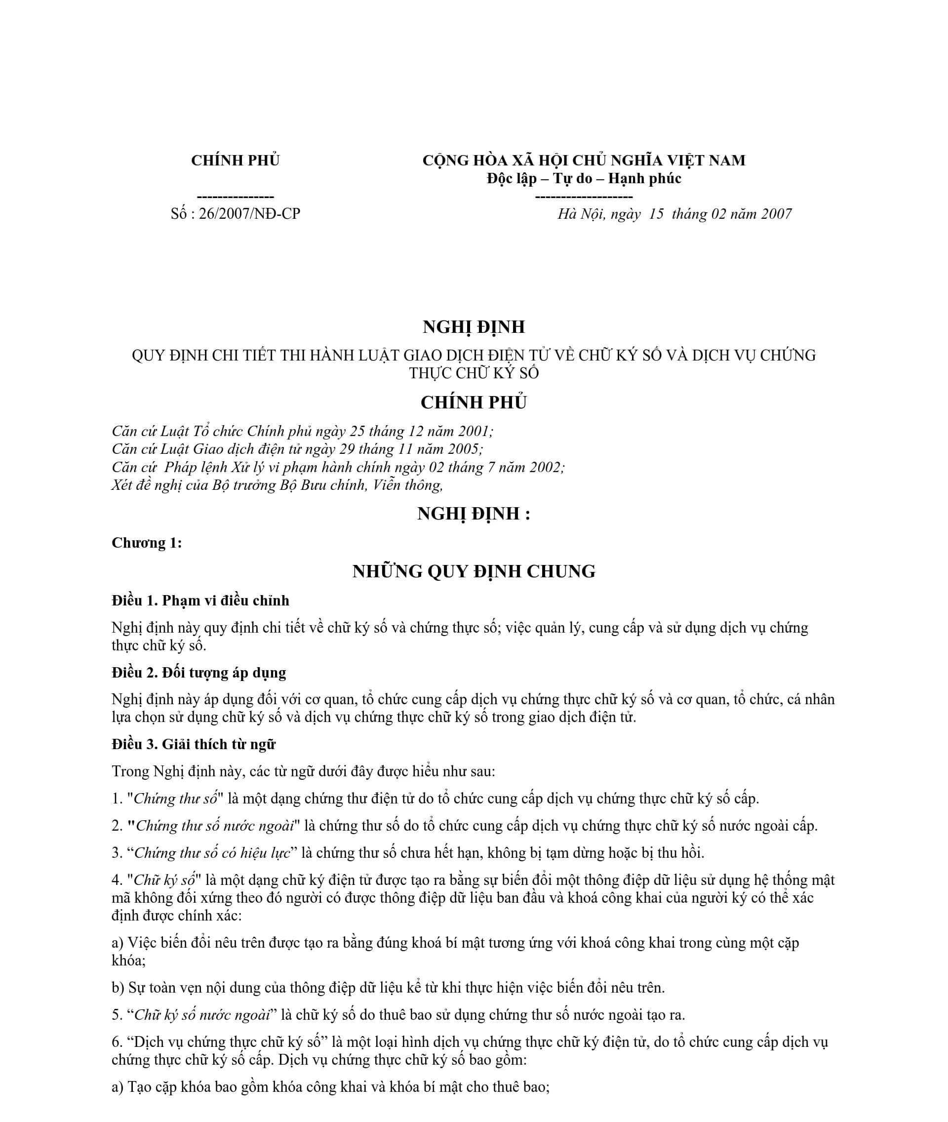 Quy định thi hành luật giao dịch điện tử về chữ ký số