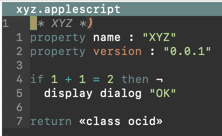 vim --clean xyz.applescript. The file has been saved with Mac OS Roman encoding.se fenc?The output is fileencoding=latin1.