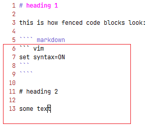 @lacygoill "But does it make sense to have a Markdown fenced code block inside a Markdown file?" --- Yes, if your Markdown file is about the Markdown language itself (a tutorial, style guide, or something like this.)