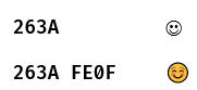You can then safely (for these characters anyhow) do a class substitution, including the unqualified variants of these emoji. But you will still "break" any other combined characters with variation selectors FE00 to FE0F. You also cannot use \%C to ignore the combining character in that range, which I guess is because only https://www.unicode.org/charts/PDF/U0300.pdf are ignored? E.g., /\%C[☺]️ finds both the unqualified and fully-qualified emoji, which are different: ☺ is U+236A whereas ☺️ is U+236A,U+FE0F: although they look identical in GitHub (unless put in a code block, oddly), in other applications they are clearly distinguished, e.g., Word: