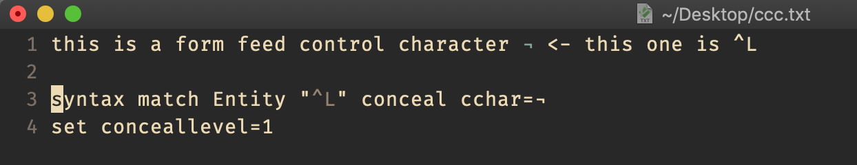 and the end-of-line character. Later it has been improved to allow additional characters, like spaces and others. At the same time, the conceal feature was introduced, that allows some more flexibility on what parts of the text (so not just single characters) to show differently. This is much more flexible (e.g. by allowing syntax files to configure it per language and window), but also introduced several new bugs and may slow down vim a bit. So we now have both methods. Use whatever works for you.