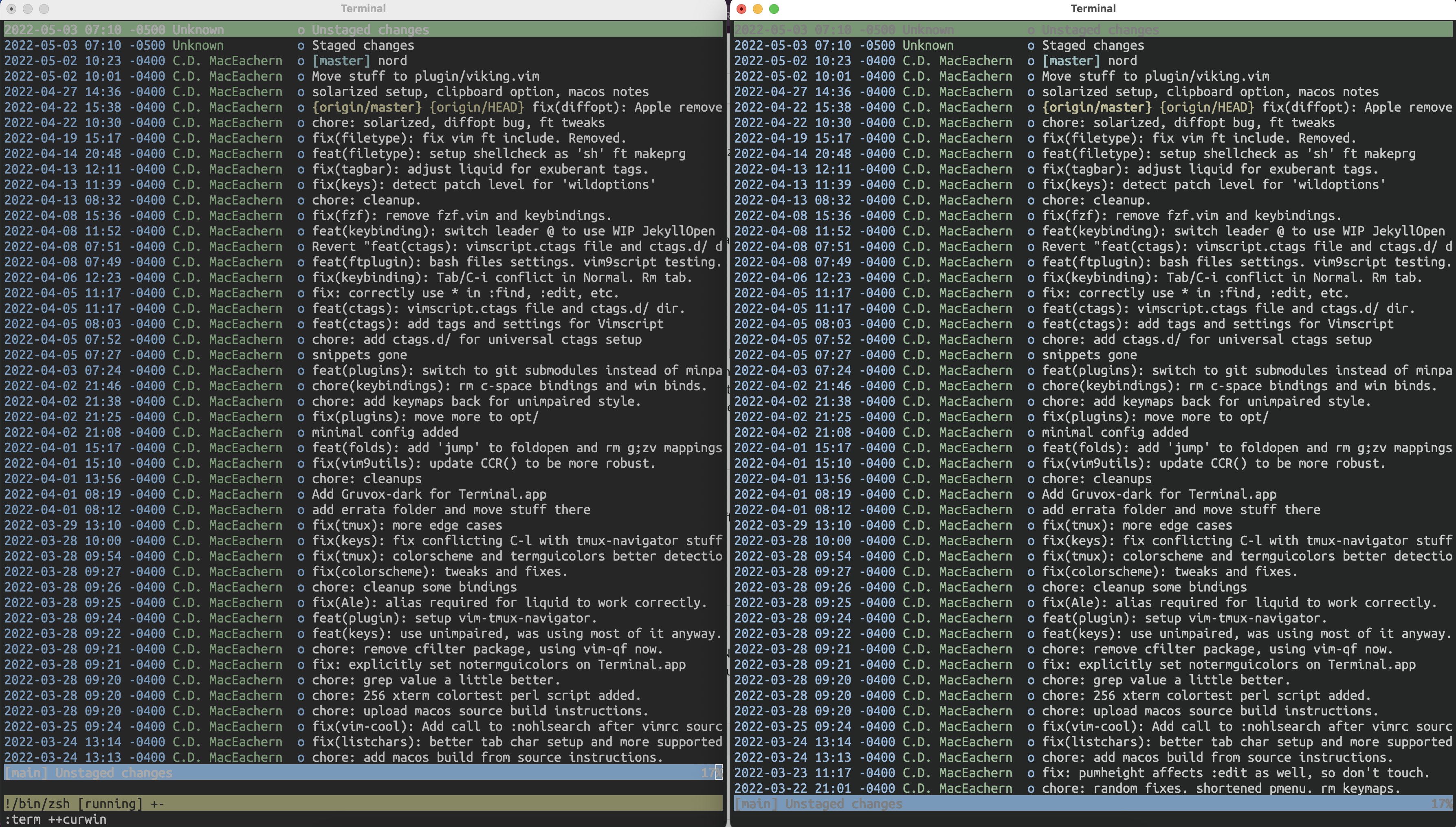 Colors in Vim terminal and Terminal.app match exactly in colortest and TUI programs like tig.