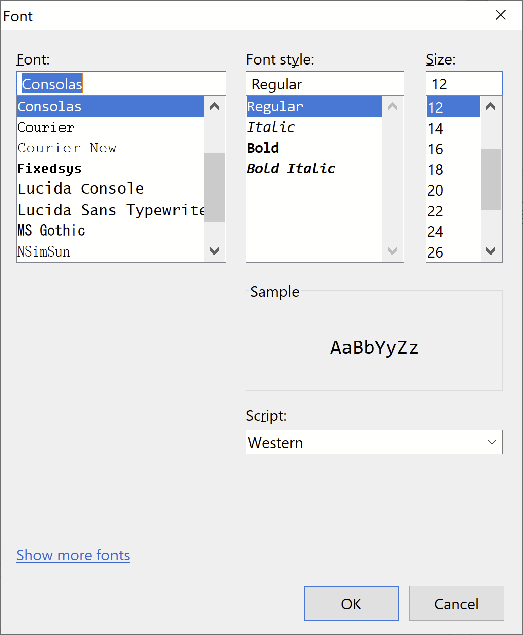 Changing the default font from Fixedsys to Courier New or Consolas might be acceptable.