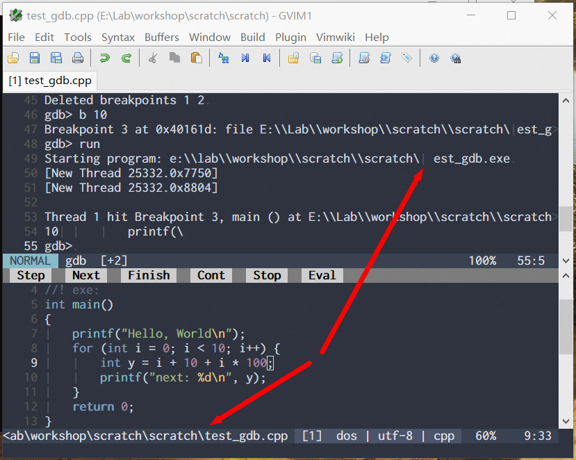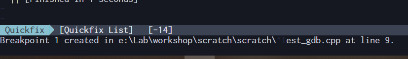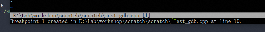 gdb displays is as ``E:\Lab\workshop\scratch\scratch\test_gdb.exe`
