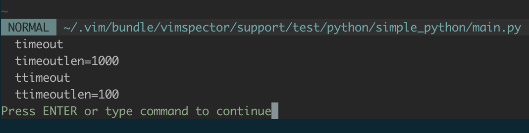 :set timeout? timeoutlen? ttimeout? ttimeoutlen?