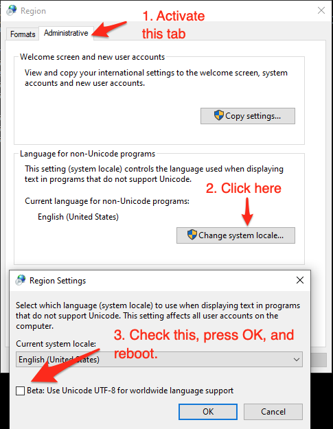 Using the UTF-8 system setting may "fix" some issues, but it can easily cause other issues.