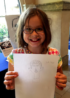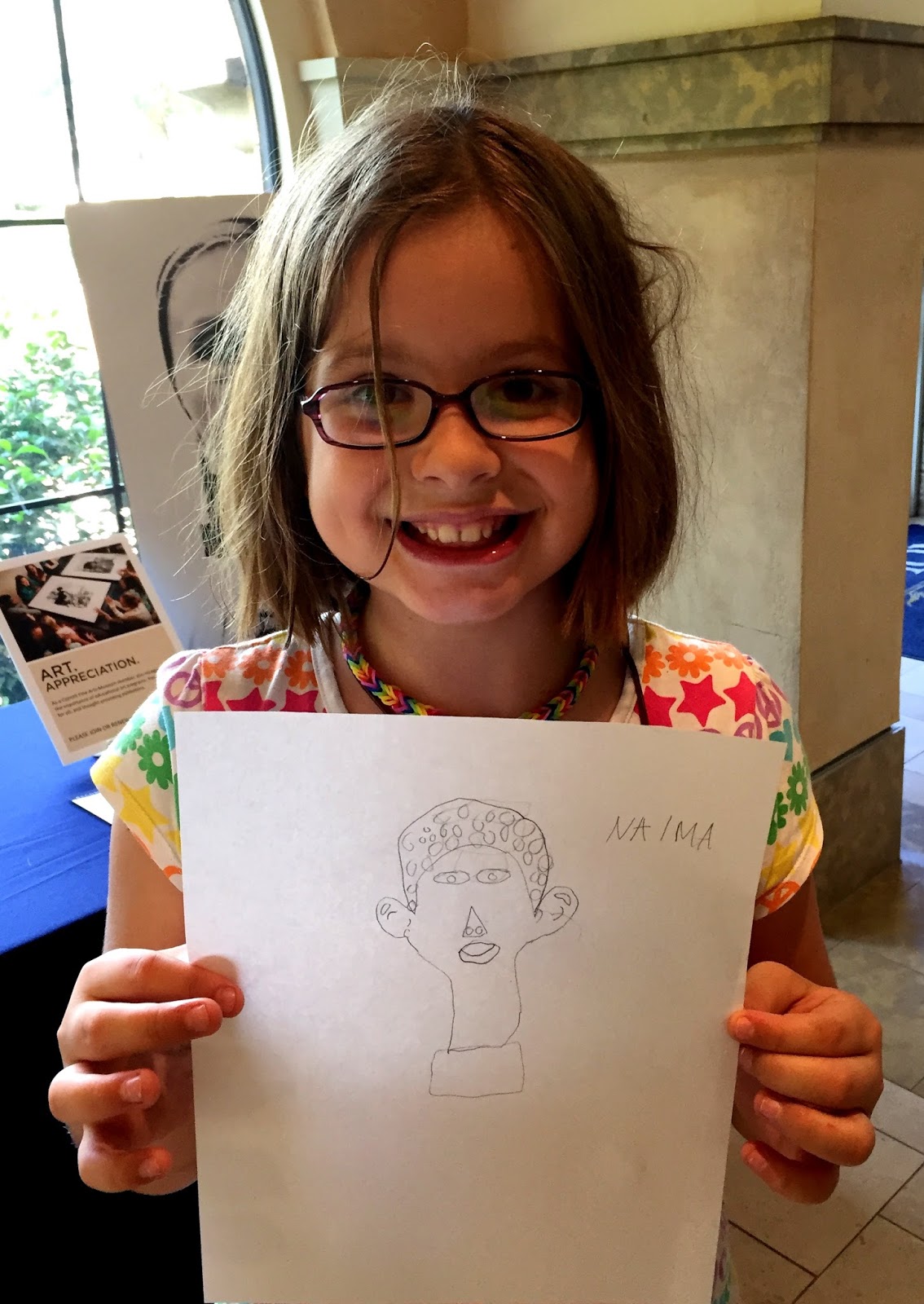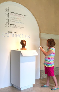 Speaking of art museums... My daughter loves them, too! That makes me a very happy mommy. Last Friday, after watching a performance of the Talako Indian dancers in a park, we went to the nearby Cornell Fine Arts Museum on the campus of Rollins College. It's not a big museum, but it's free. One of the exhibit rooms was not suitable for children due to mature photographic content. Oops! However, in another more family friendly area, they provide clipboards and art materials so kids can sketch sculptures.