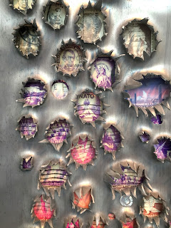 Look closer at the detail from the left hand side of "Just Discovered" by Carlos Vega. Stamps!