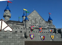 In the Dragon roller coaster ride, the outside is a Lego looking castle