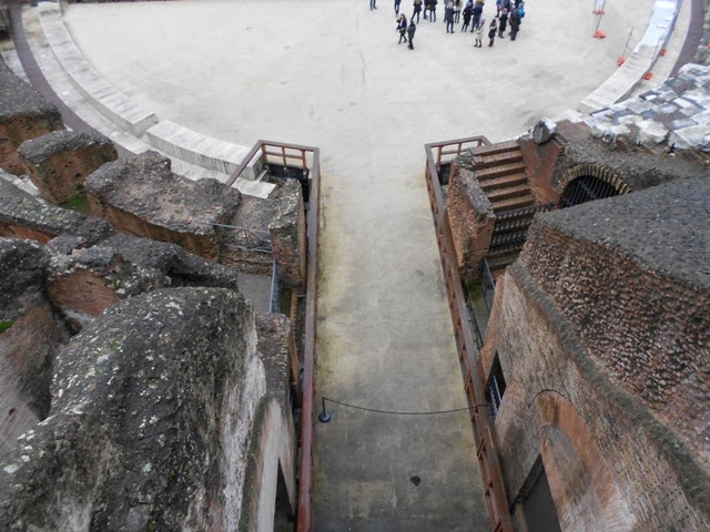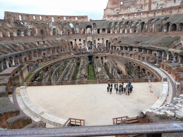 I spent the longest amount of time at the Colosseum where I again, like at the Vatican Museum on the prior day, paid for the audio tour. As you step from the subway station, this is the current view of the Colosseum. Inside, it is possible to imagine what it was like when there was a floor and what it was like with no floor. Thousands of prisoners died here, eaten by animals for fun. It is creepy with the large cross, which the Pope visits every Good Friday as part of a ritualistic tour, to think this was acceptable. I suppose, though, people will look back at our civilization and think that it is creepy that we could be so lonely that we would purchase a gun and blow our brains out in the privacy of our home...or take a gun to school or the theater and lay siege. Each age has its frightening specters and this week, the shortcomings of the present era are weighing heavily on my still un-splattered mind. (I lost a friend to suicide; don't worry about me.)