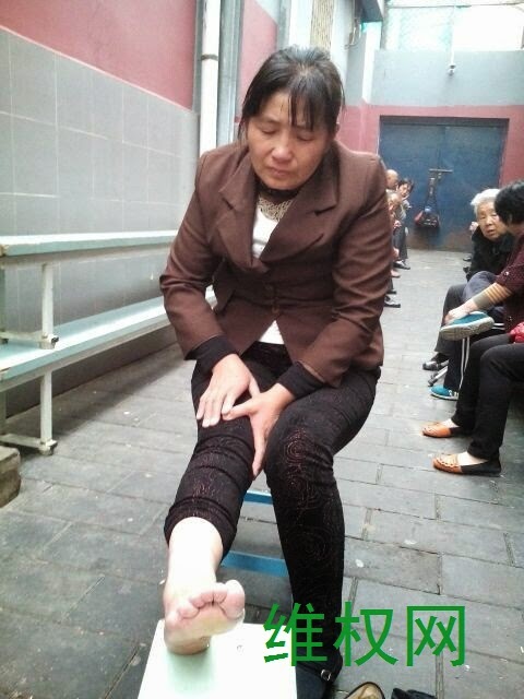 (维权网信息员陈华报道)湖北襄阳市南漳县武安镇的下岗工人郑玉林,因遭遇司法不公,2014年10月24日带着年仅12岁的女儿到北京上访,25日在天安门与众多访民被警察赶往派出所的时候,被又推又搡,被推倒在地后遭人踩踏,右脚被踩伤骨折,后被带往九敬庄。当地政府在截访中,郑玉林母女又遭遇黑保安殴打,途中,不准说话,不准上厕所,稍有不从,就拳脚相加。到了襄阳,黑保安将母女拖下车子便扬长而去。郑玉林忍着剧痛,到医院拍片,说是骨折,但因为没钱,郑玉林不敢住院治疗,只好回家听天由命。郑玉林哭着对人说:“现在政府太黑了,们老百姓还有没有活路。”