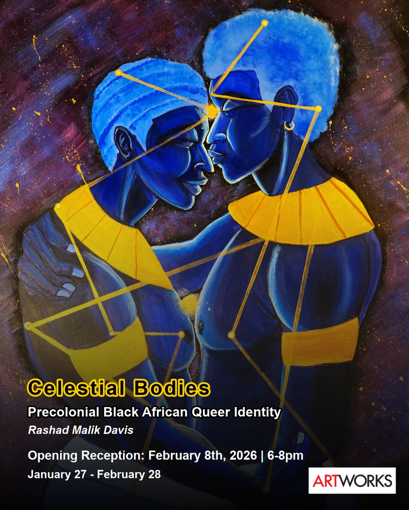OPENING RECEPTION - Introducing Celestial Bodies: Precolonial Black African Queer Identity by Rashad Malik Davis. [Saturday, February 7, 6-8pm] Artworks Trenton, 19 Everett Alley, Trenton. See the Flier More Details