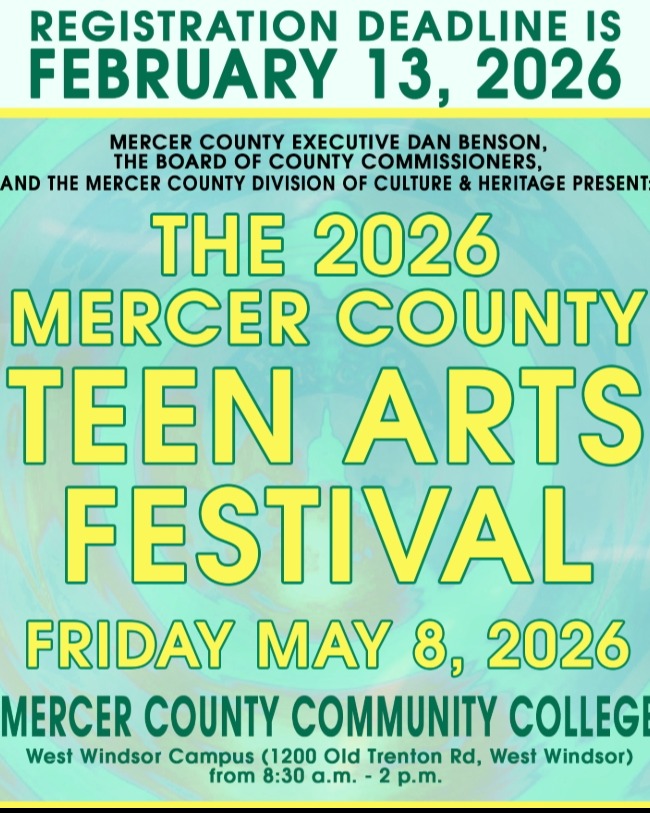 Mercer County Teen Arts Festival - REGISTER to PARTICIPATEE. [Registration ends February 13, the festival is on May 8 at MCCC West Windsor Campus] Calling all creative teens! The Mercer County Teen Arts Festival is coming up so don’t miss your chance to showcase your talent, connect with other young artists, and celebrate creativity. The Mercer County Teen Arts Festival is a one-day celebration of the arts, curated for Mercer County’s wide array of talented teen artists! The festival is designed to both stimulate creative growth and provide a space for artistic community building. See the Flier Details and Registration