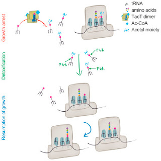 In the study, researchers showed that TacT is actually part of a TAT system and the protein is functionally related to GNAT (Gcn5 N-acetyltransferases) superfamily with known acetylation capabilities. They basically catalyse acetyl group transfer from acetyl-coenzyme A (Ac-CoA) to a wide range of substrates. Further cell free assays showed that TacT acetylates the amino acid of aminoacyl-tRNAs to inhibit translation, using acetyl-CoA as a cofactor. TacT acetylates the primary amine group of the amino acid on the charged tRNA molecules. Once acetylated, the amine group of the A-site amino acid would be unavailable to the carboxyl group and protein synthesis would be blocked. This merely leads to a prolonged lag phase a feature of being persistent. Most of the times, TAT involves a antitoxin mechanism to come out of locking effect. In this case, translation inhibition is not easy to overcome and hence researchers explored to see if they could turn out any Antitoxin independent mechanism. By screening for genes that suppress TacT toxicity the team hit upon peptidyl-tRNA hydrolase (Pth) as a possibility. Pth can deacetylate an already acetylated aminoacyl-tRNA thus reversing the effect. It is interesting to note that GNAT toxins are present in many pathogenic species such as Salmonella, Shigella, Vibrio etc. Typhimurium is notoriously known for its ability to persist inside macrophages and the same team had earlier reported that TacT is specifically activated upon entry of Salmonella in macrophages contributing to persister formation. This study provides a great model to look into how persistence can be achieved. It would be interesting to know what actually triggers the TacT. 1. Cheverton A, Gollan B, Przydacz M, Wong C, Mylona A, Hare S et al. A Salmonella Toxin Promotes Persister Formation through Acetylation of tRNA. Molecular Cell. 2016;63(1):86-96. 2. Attar N. Bacterial toxins: An antidote to persistence. Nature Reviews Microbiology. 2016;14(8):473-473. |