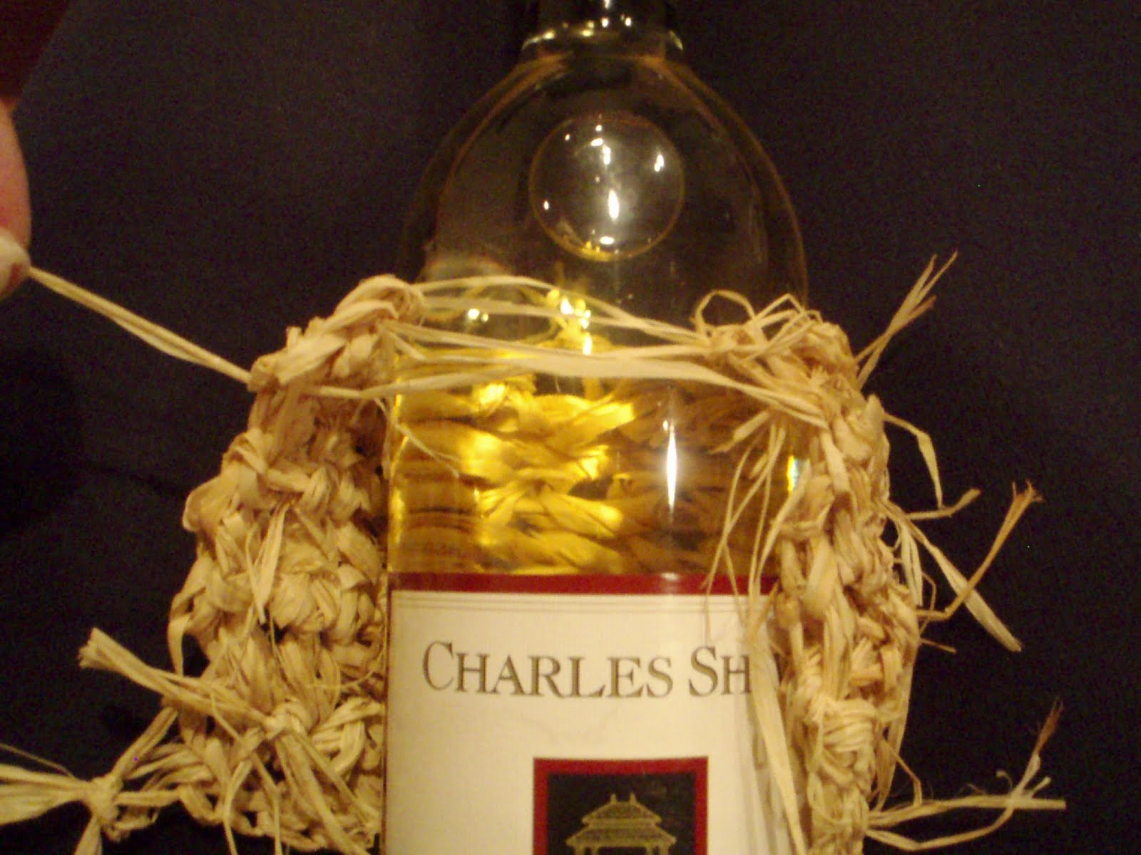 This allowed me to tie it onto the bottle, just like you would lace up a corset. The raffia provides a decent amount of give so don't panic if there is a large gap in the back. You will be able pull the corset strings tight to close it up.