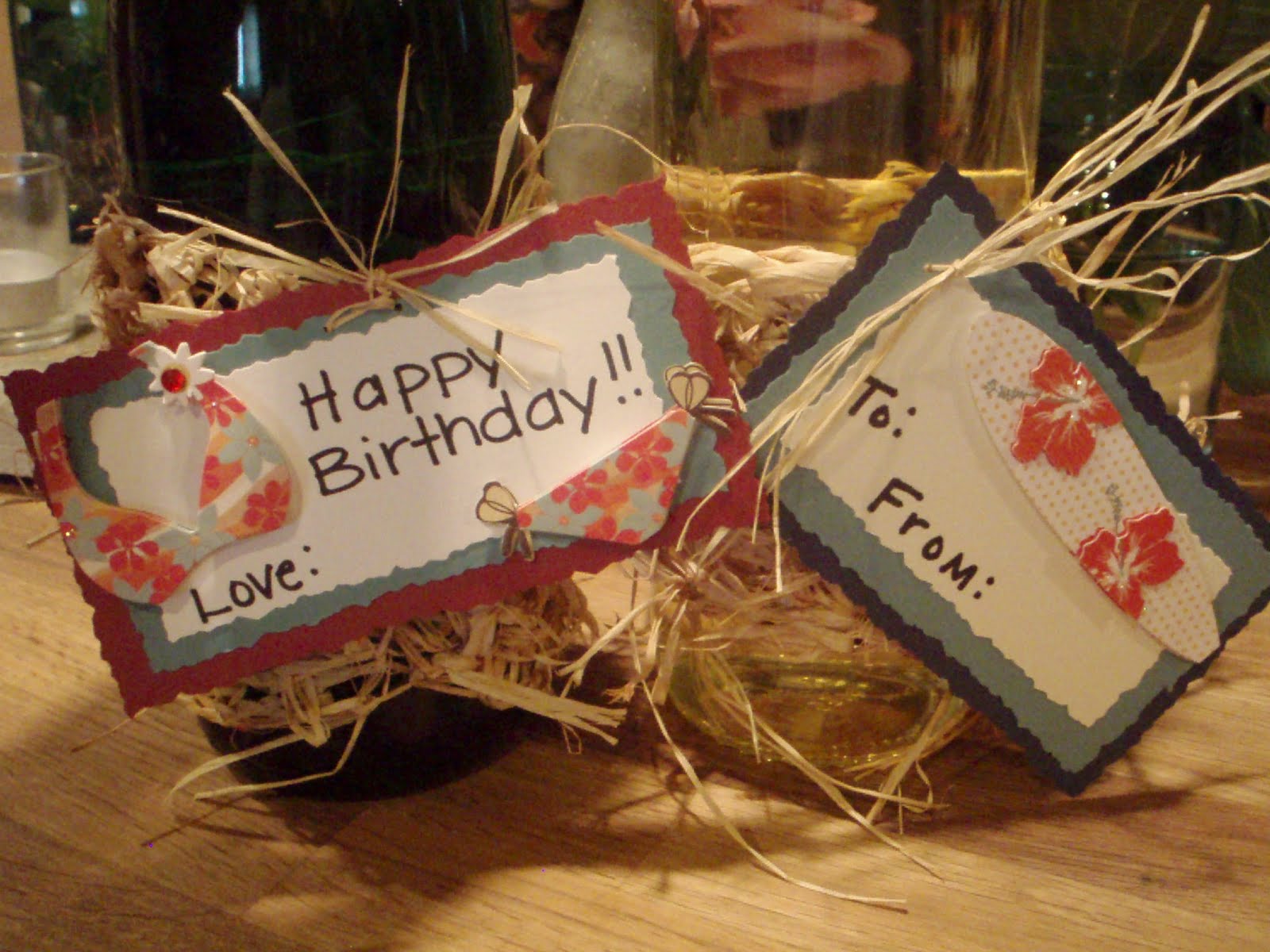 For the last part, I made some gift tags, which can once again cover up any errors in the kozie, and shockingly, tied them on with some strings of raffia.