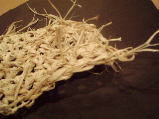 I discovered that the best part of this project was that it didn't have to be perfect. I definitely skipped some holes and had some sections that were longer than others. Raffia is pretty unpredictable and has a bunch of random strings that will get in your way or get stuck on the crochet hook. However, when I was done with the square, I pulled at it till some of the bigger mistakes weren't as noticeable and then pulled out all the knot ends to cover up some of the other areas.