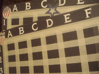 with my patriotic stickers and then covered each board with contact paper (to protect these little gems, seeing that we would be pouring beer onto it and duh, I want to be able to use these again). Since I am a math drop out, I failed to realize that each space on the board should be a perfect square in order to use the ships both vertically and horizontally (FINALLY, an answer to the question "when am I ever going to need math in real life?") so I was unable to keep the boats whole.