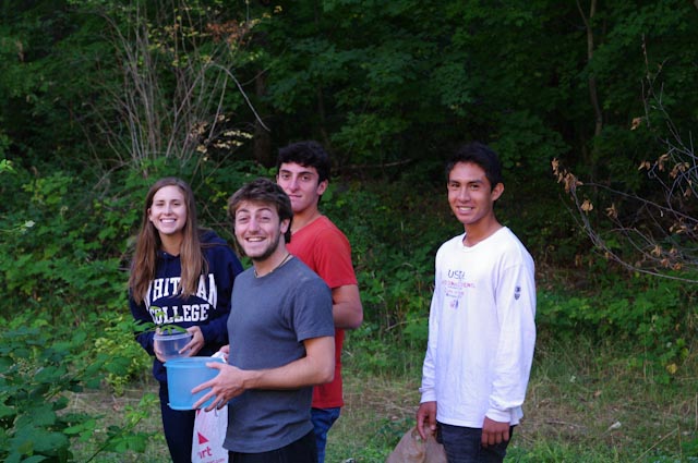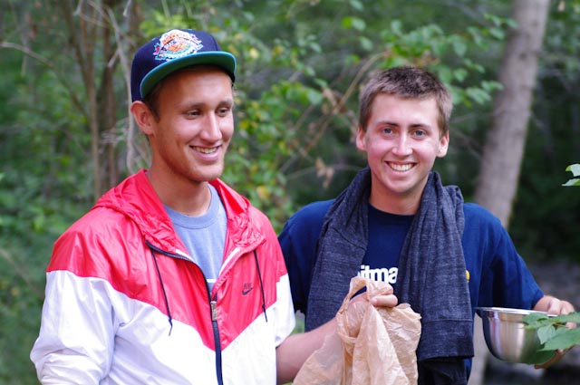 Sunday provided a perfect opportunity for exploration and team bonding as we joined the women's team for some blackberry picking and a dutch oven dinner at Professor Hutchinson's spread on the South Fork of the Walla Walla. Besides being an incredibly popular Whitman professor, Hutch is also a huge fan of Whitman athletics. He routinely shows up at a number of athletic competitions. Funny story -- last year he was kicked out of a men's basketball game!