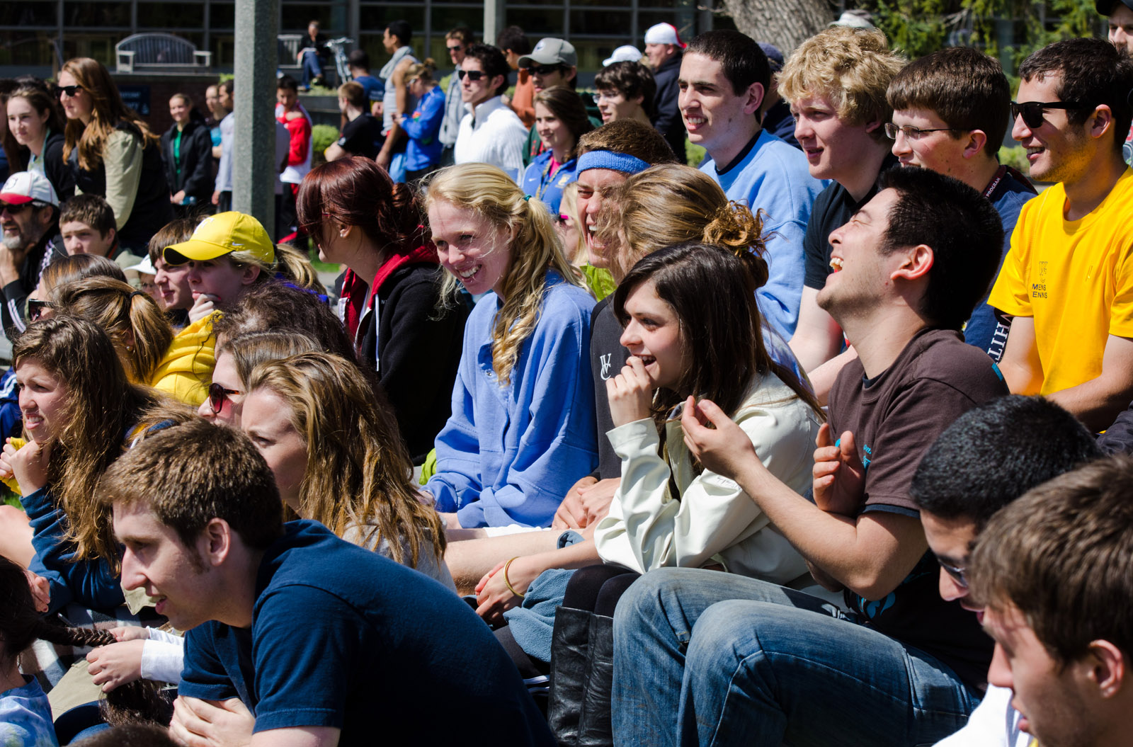 One of the special qualities of Whitman is most of the students know and support each other. Whenever we have big matches on campus we typically draw a great crowd. For instance in past year's we have had hundreds show up to watch us play UC Santa Cruz. However nothing compares to what happened at yesterday's conference finals. Not only did we have a huge crowd (overflowing the bleachers)