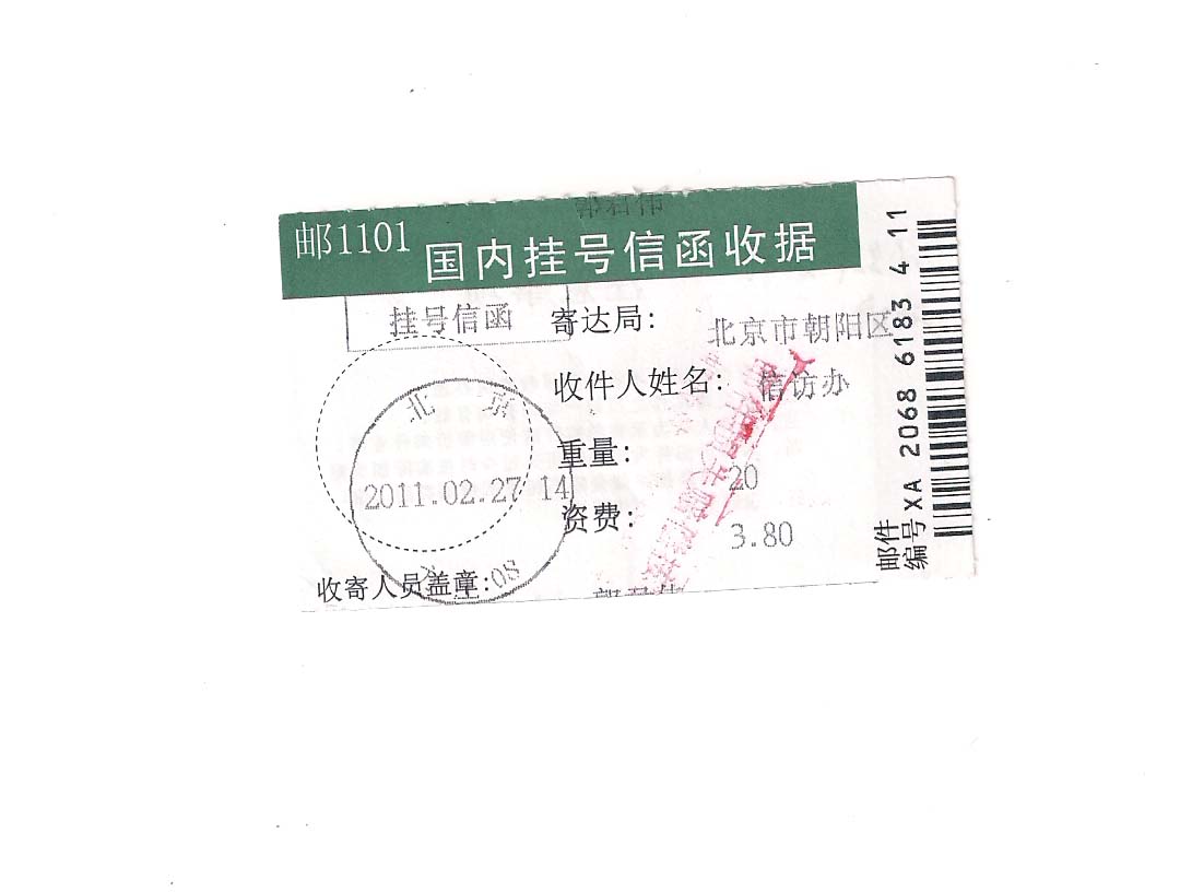 附:1、行政复议申请书2份 2页 2、国内挂号信函收据 1份 1页