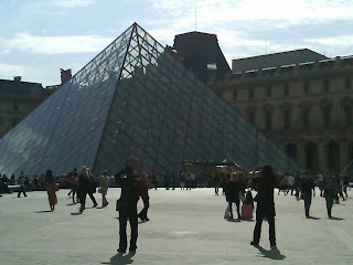 only for handicapped and since she's not in a wheelchair we had a very hard time getting them to understand that she needed to use the lift - our French is just not that good! Needless to say, we saw the most important thing we wanted to see which was the Mona Lisa (and was, of course, up about nine flights of stairs). We also meandered through the Egyptian Antiquities and a few rooms of fabulous sculptures before finding a cup of coffee, a croissant, and some ibuprofen for mom and ending our trip to the Louvre. In all honesty, I think I enjoyed the outside of the Louvre as much as the inside - it is made up of fabulous architecture. In case you didn't know, what is now the Louvre was at one time home to the Kings of France. Below are a few pictures from our short stay at the