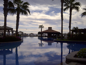 Hola from Cabo San Lucas, Mexico! Once again, I am uber blessed with the opportunity to see more of God's beautiful creation. I arrived here yesterday after a rather short flight on a recently bankrupt airline, but they did still provide excellent service with smile and got me here safe and sound (even with the reminder to use sunscreen)! I am here with a couple of colleagues - one of whom has the time-share space at this beautiful resort and brought our communications team (both of us) out to do some strategizing and relaxing. Hey - we would've had to meet somewhere, may as well be here!