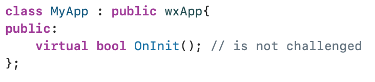 That is, we can conclude that when we pass the MyApp class to the macro, after creating the object, the OnInit() method is not called in wxWidgets itself, and this is the problem.
