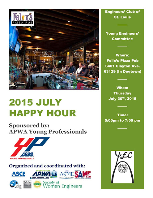 Join the Young Engineers' Committee this Thursday for their July Happy Hour at Felix's Pizza Pub in Dogtown. The event is being held from 5pm-7pm and is sponsored by APWA Young Professionals. Hope to see you there!