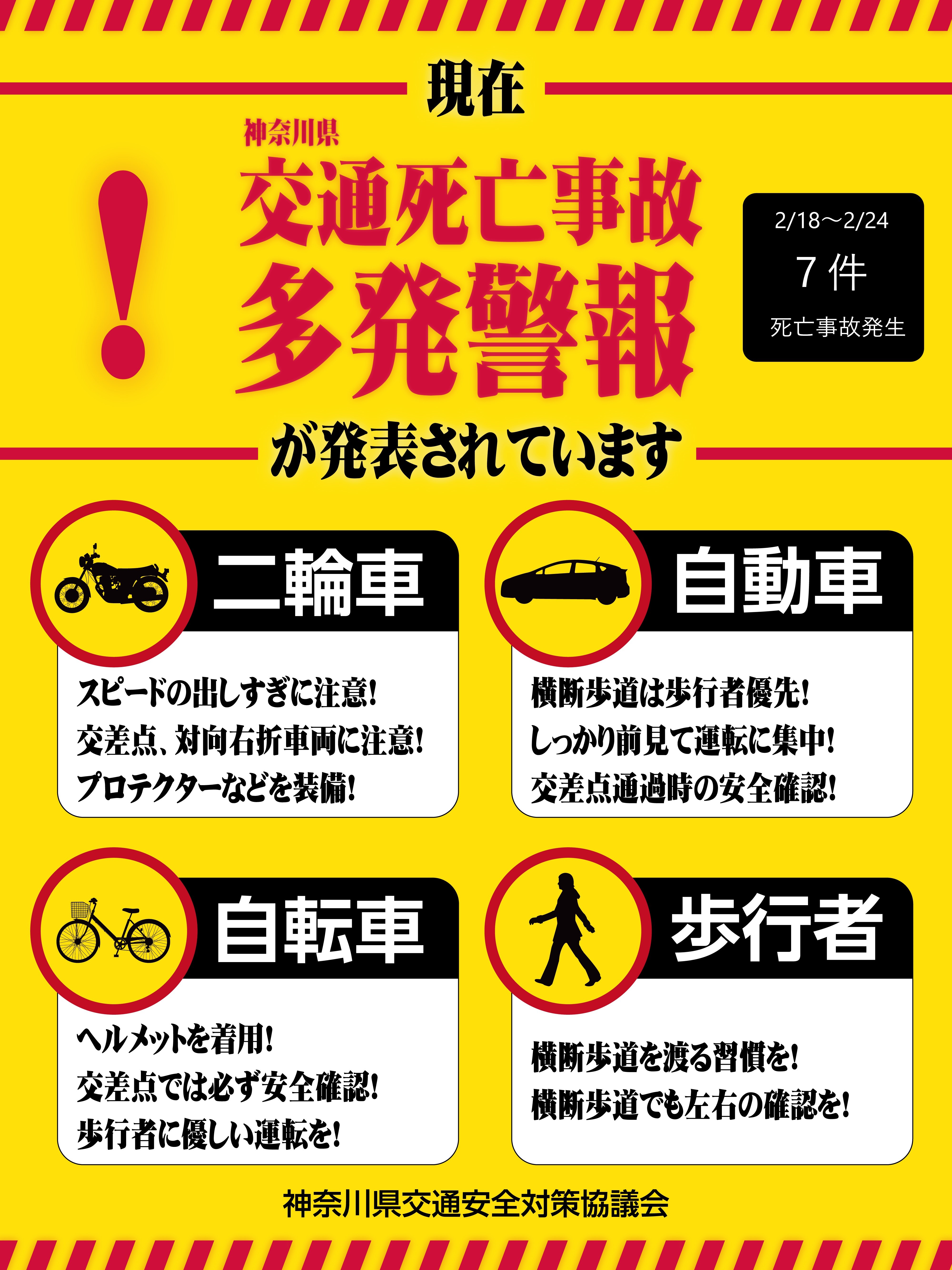 [添付有]神奈川県 交通死亡事故多発警報発令