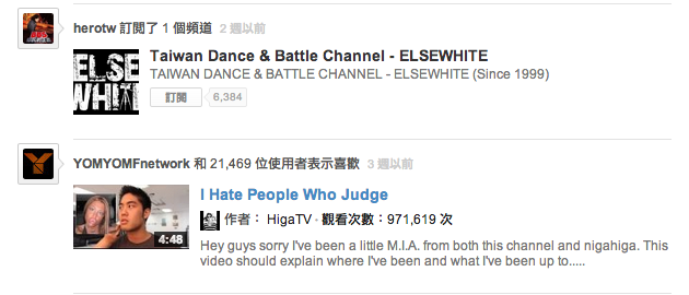 訂閱頻道的動態訊息: