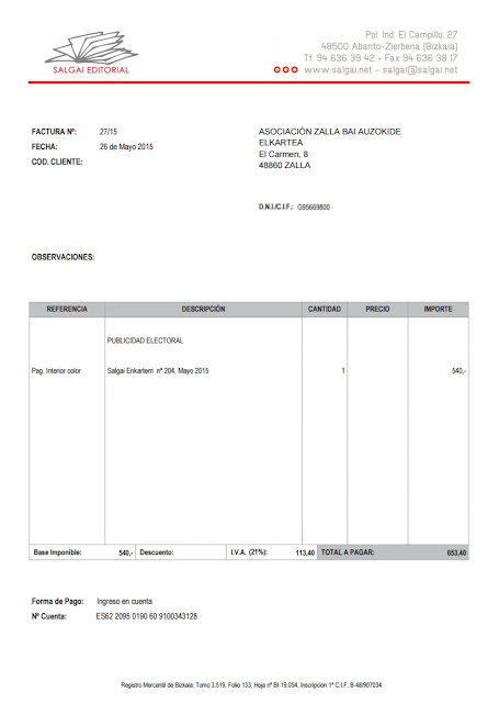y como muestra de ello adjuntamos la factura que Salgai Editorial