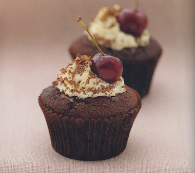 1. Meanwhile, whip cream until stiff peaks form, then top each cake with a dollop of cream, a sprinkle of chocolate shavings and a fresh cherry.