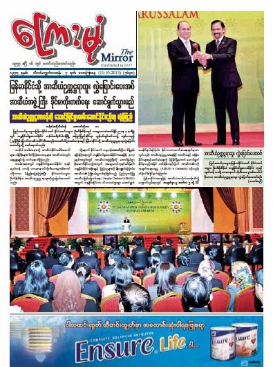 ေအာက္တုိဘာလ (၃)ရက္ေန႔ထုတ္ ျပည္ျမန္မာ သတင္းဂ်ာနယ္ အမွတ္ ၈၉၀ Posted: 05 Oct 2013 01:20 PM PDT ေအာက္တုိဘာလ (၃)ရက္ေန႔ထုတ္ ျပည္ျမန္မာ သတင္းဂ်ာနယ္ အမွတ္ ၈၉၀ |
