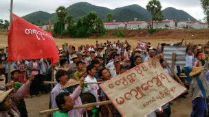 ေလ်ာ္ေျကးတဲ့မယူသူေတြရဲ့ ေျမယာေတြကို ရဲေတြ ေစာင့္ျကပ္ျပီး ကုမၸဏီက ျခံဝင္ခတ္ Posted: 11 Oct 2013 09:20 PM PDT လက္ပန္းေတာင္ ေျကးနီ စီမံကိန္း ဧရိယာမွာ ရိွတဲ့ လယ္ေျမ ေတြထဲက ေလ်ာ္ေျကး မယူပဲ ျငင္းဆန္ ေနသူေတြရဲ့ ေျမယာေတြကို ျပီးခဲ့တဲ့ ရက္ပိုင္းက ရဲေတြ ေစာင့္ျကပ္ျပီး ကုမၸဏီက ျခံဝင္ခတ္လို့ မေန့ ကေတာ့ ရြာသား ေတြနဲ့ ရင္ဆိုင္ အခ်င္းမ်ား ခဲ့ရပါတယ္။ ေျမယာ ေလ်ာ္ေျကး မယူတဲ့ သူေတြရဲ့ ယာခင္းေတြမွာ သြပ္ဆူးခတ္ ၊ တိုင္စိုက္ ၊ အခင္းကို ေျမေကာ္စက္ေတြနဲ့ ထိုးတာေတြ လာေရာက္ လုပ္ေဆာင္ခဲ့ တယ္လို့ ယာခင္းရွင္ တေယာက္ ျဖစ္တဲ့ ဦးေအာင္သန္းက ေျပာပါတယ္။ --- |