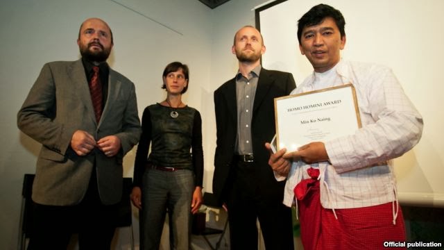ဦးမင္းကုိနုိင္ Homo Homini Award ဆု ရ႐ွိ Posted: 05 Oct 2013 06:54 AM PDT ၈၈ မ်ဳိးဆက္ပြင့္လင္း လူ့အဖြဲ့ အစည္းရဲ့ ေခါင္းေဆာင္တဦး ျဖစ္တဲ့ ဦးမင္းကိုနုိင္ဟာ ခ်က္နုိင္ငံရဲ့ လူအခြင့္အေရး ဆုိင္ရာ ဆုကုိ ခ်က္နုိင္ငံမွာ ေအာက္တုိိဘာ ၃ ရက္ေန့က လက္ခံရ ယူခဲ့ပါတယ္။