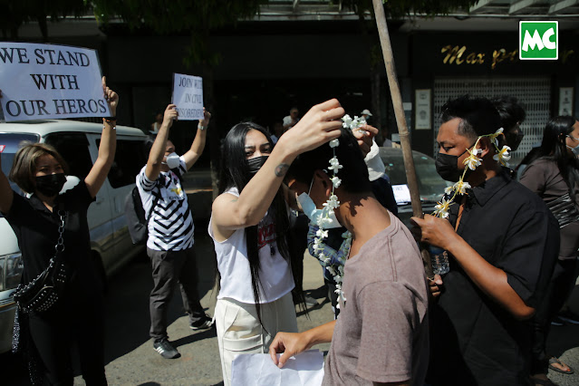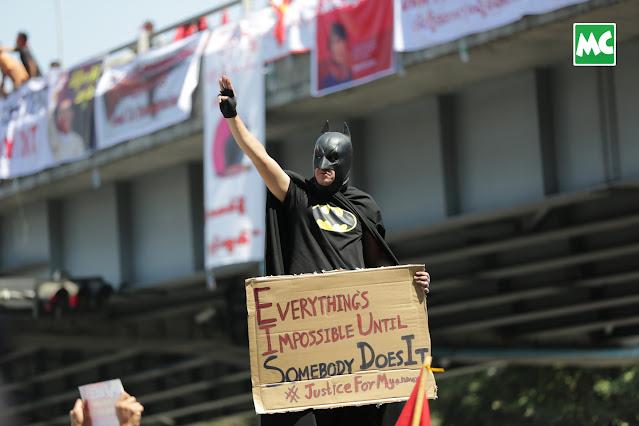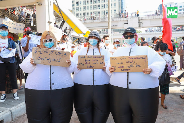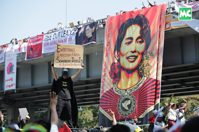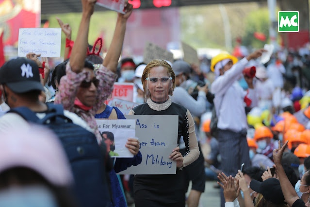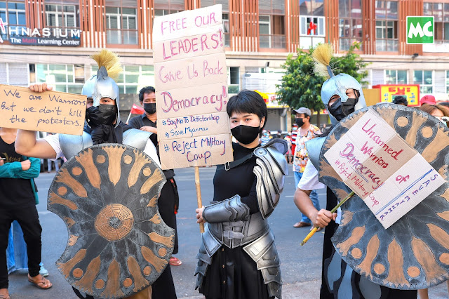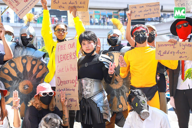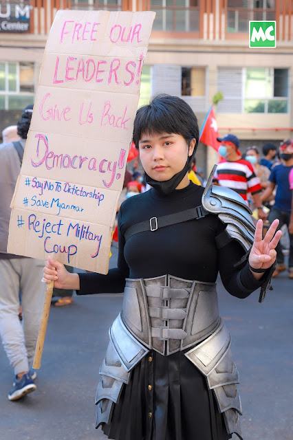 အာဏာရှင်ကို ဆန့်ကျင်ကြောင်း Hero ဝတ်စုံများဖြင့် ဆန္ဒဖော်ထုတ် Posted: 11 Feb 2021 12:01 AM PST တပ်မတော် အာဏာသိမ်းမှု လူထု ဆန့်ကျင်ဆန္ဒပြပွဲ ခြောက်ရက် မြောက်နေ့တွင် အဆိုတော် မီစန္ဒီ နှင့် အနုပညာရှင်များက Hero ဝတ်စုံများဖြင့် ရန်ကုန်မြို့လည်ခေါင်မှာ ပြည်သူတွေ နဲ့ အတူ ဆန္ဒထုတ်ဖော် ခဲ့ကြပါတယ်။ ဒီမိုကရေစီ ပြန်လည်ရရှိရေး နဲ့ ဒီမိုကရေစီ နည်းအရ တင်မြောက်ထားတဲ့ ခေါင်းဆောင်တွေ ပြန်လွတ်ပေးရေးတွေကို တောင်းဆို ခဲ့ကြပါတယ်။ |