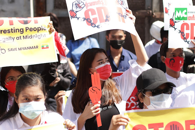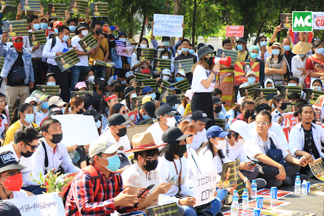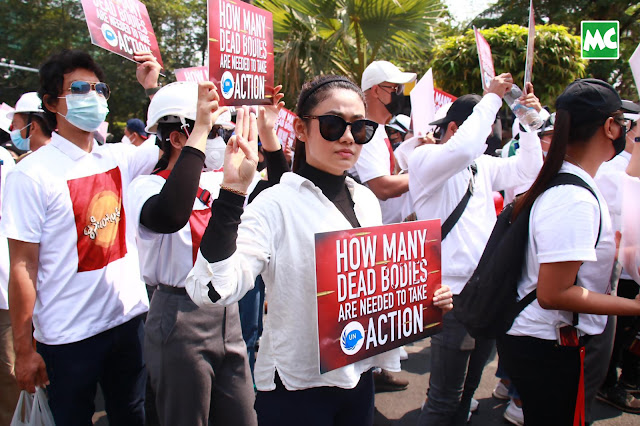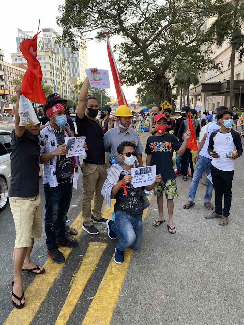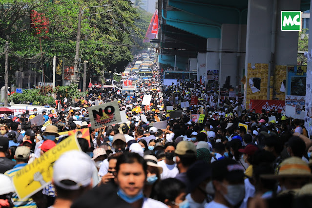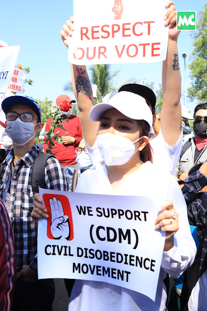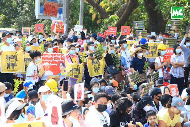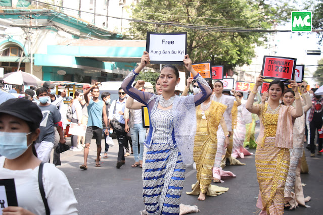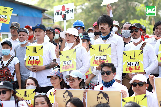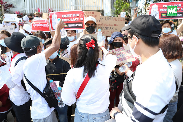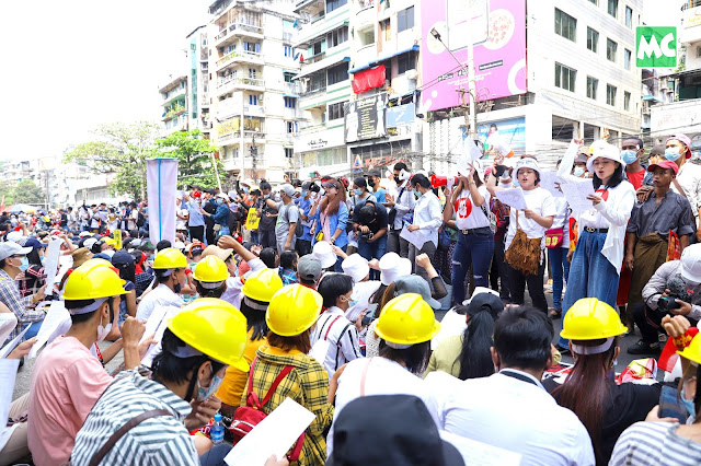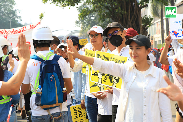 လူထုဆန္ဒပြပွဲ (၅) ရက်မြောက် ရန်ကုန်မြို့ မြင်ကွင်း Posted: 10 Feb 2021 01:35 AM PST ပုဒ်မ (၁၄၄)၊ လူငါးဦးထက် ပိုမစုရ ထုတ်ပြန်ပြီးသော်လည်း ဒီကနေ့ ၊ ဖေဖော်ဝါရီလ (၁၀) ရက်နေ့ ၊ လူထုဆန္ဒပြပွဲ (၅) ရက်မြောက်နေ့ အဖြစ် ရန်ကုန် ပြည်သူတွေ ငြိမ်းချမ်းစွာ ဆန္ဒ ဆက်လက် ထုတ်ဖော်နေကြတာပါ။ စစ်အာဏာသိမ်း ဆန့်ကျင်ရေး လှုပ်ရှားမှုတွေမှာ လူငယ်တွေက နည်းလမ်းမျိုးစုံ၊ ပုံစံမျိုးစုံ နဲ့ သူတို့ရဲ့ ဆန္ဒတွေကို ထုတ်ဖော်ပြသ နေကြပါတယ်။ Myanmar Celebrity Update: People's Rally in Yangon against Military Dictatorship. #SaveMyanmar #YangonRally #MyanmarCDM |