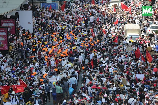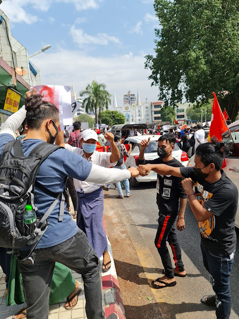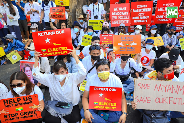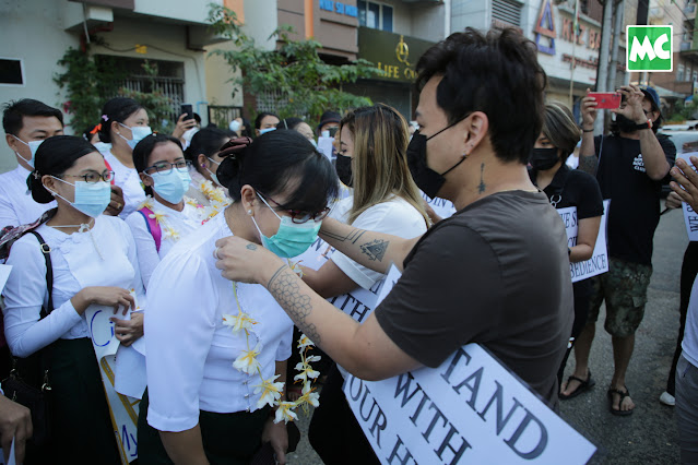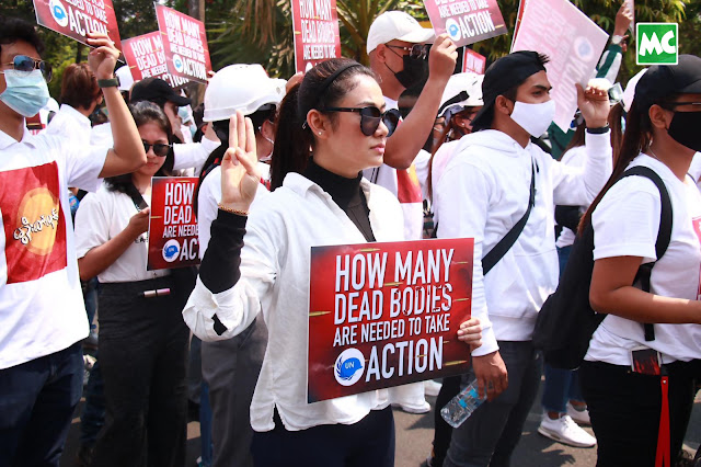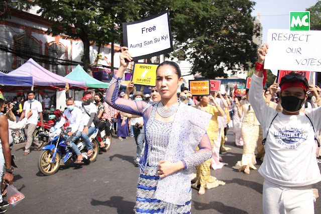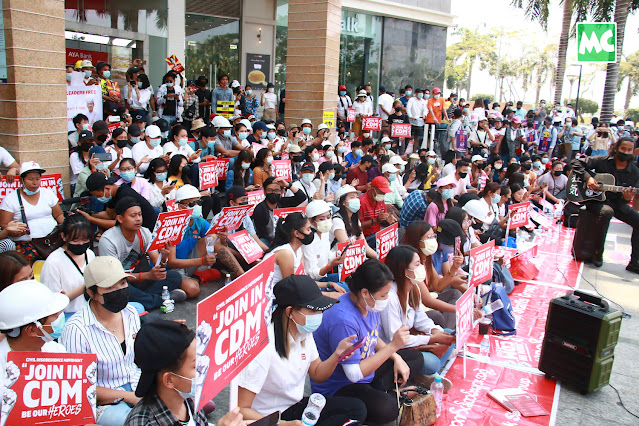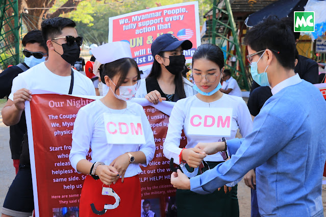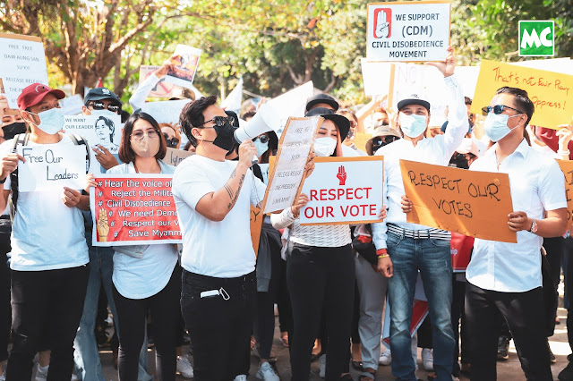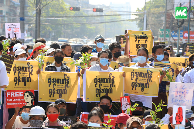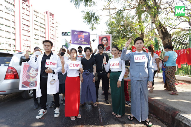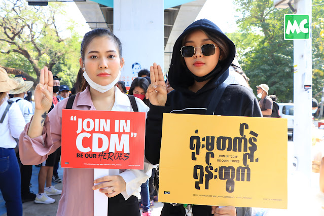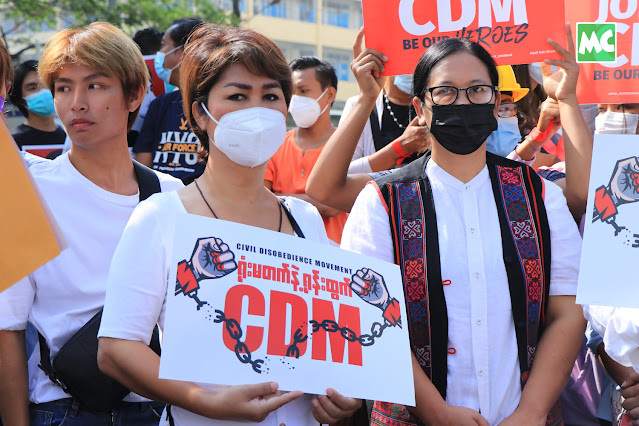 လူထုဆန္ဒပြပွဲ (၅) ရက်မြောက် ရန်ကုန်မြို့ မြင်ကွင်း Posted: 10 Feb 2021 01:35 AM PST ပုဒ်မ (၁၄၄)၊ လူငါးဦးထက် ပိုမစုရ ထုတ်ပြန်ပြီးသော်လည်း ဒီကနေ့ ၊ ဖေဖော်ဝါရီလ (၁၀) ရက်နေ့ ၊ လူထုဆန္ဒပြပွဲ (၅) ရက်မြောက်နေ့ အဖြစ် ရန်ကုန် ပြည်သူတွေ ငြိမ်းချမ်းစွာ ဆန္ဒ ဆက်လက် ထုတ်ဖော်နေကြတာပါ။ စစ်အာဏာသိမ်း ဆန့်ကျင်ရေး လှုပ်ရှားမှုတွေမှာ လူငယ်တွေက နည်းလမ်းမျိုးစုံ၊ ပုံစံမျိုးစုံ နဲ့ သူတို့ရဲ့ ဆန္ဒတွေကို ထုတ်ဖော်ပြသ နေကြပါတယ်။ Myanmar Celebrity Update: People's Rally in Yangon against Military Dictatorship. #SaveMyanmar #YangonRally #MyanmarCDM |