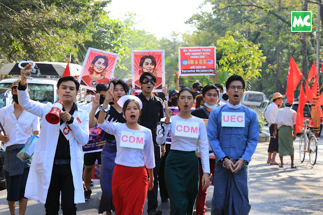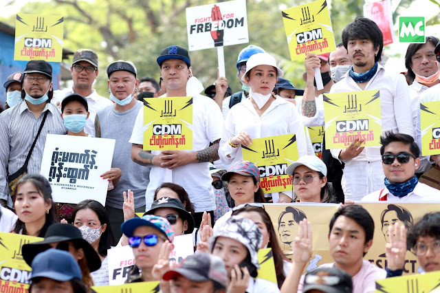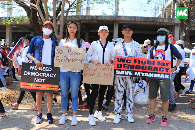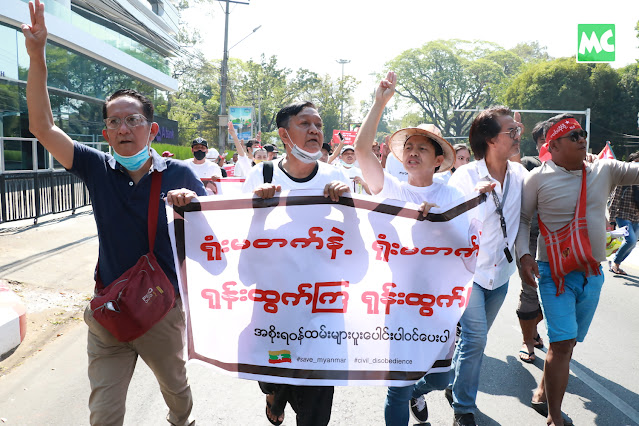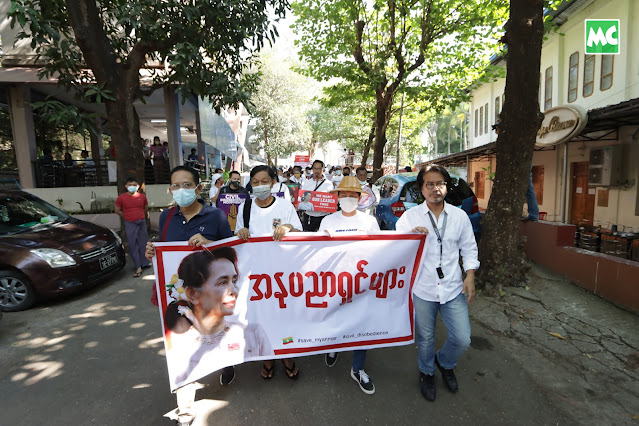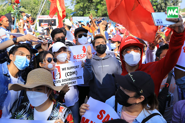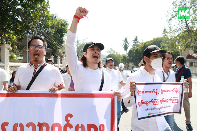 ရုံးမတက်ပဲ ရုန်းထွက် ကြဖို့ ရုပ်ရှင် အနုပညာရှင်များ တိုက်တွန်း Posted: 10 Feb 2021 02:26 AM PST သရုပ်ဆောင် လူမင်း ၊ နေတိုး ၊ မင်းမော်ကွန်း၊ ဖိုးချစ် ၊ စွမ်း၊ နေနော် ၊ ကိုပေါက် ၊ သားညီ၊ ရွှေသမီး ၊ ဝေလာရီ ၊ ကျော်ကြီး တို့ အဖွဲ့ ၊ ကိုလူချောများ အဖွဲ့ တို့က မြန်မာနိုင်ငံ ရုပ်ရှင် အစည်းအရုံး နဲ့ ပူးပေါင်းပြီး ဒီကနေ့ ၊ ဖေဖော်ဝါရီလ (၁၀) ရက်နေ့တွင် ပြည်သူတွေ နဲ့ အတူ ချီတက် ဆန္ဒထုတ်ဖော် ခဲ့ကြပါတယ်။ ဒေါ်အောင်ဆန်းစုကြည် လွတ်မြောက်ရေး ၊ ရုံးမတက်ပဲ ရုန်းထွက်ကြရေး ၊ အာဏာမှောင်မိုက် စစ်စရိုက် ကျဆုံးရေး စတာတွေကို တောင်းဆိုး ဆန္ဒပြ ခဲ့ကြပါတယ်။ |