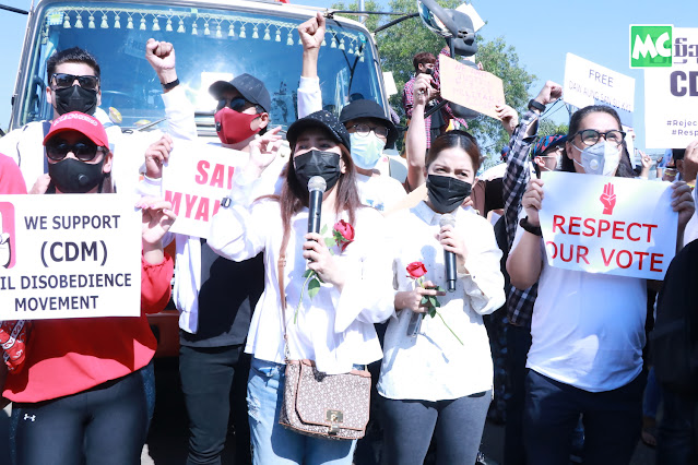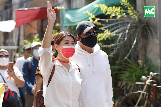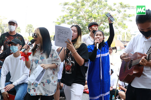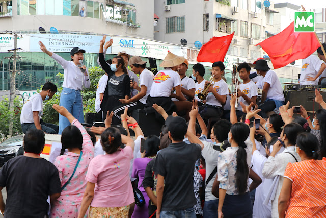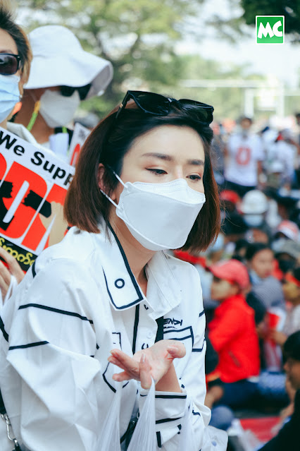 Myanmar Celebrity TV Update: Mi Sandy and Artist participate in People's Rally against Military Dictatorship. #MiSandy #MyanmarArtist #SaveMyanmar #MyanmarDemocracy #PhoeChit