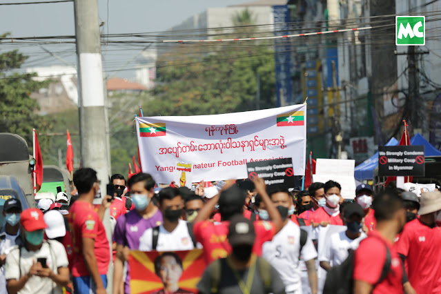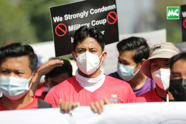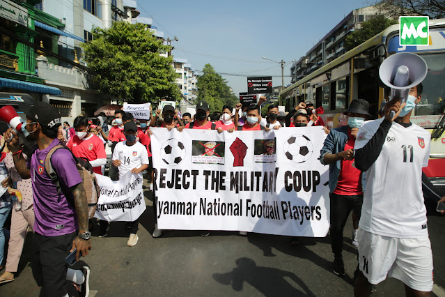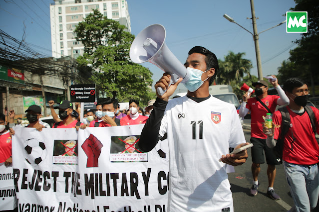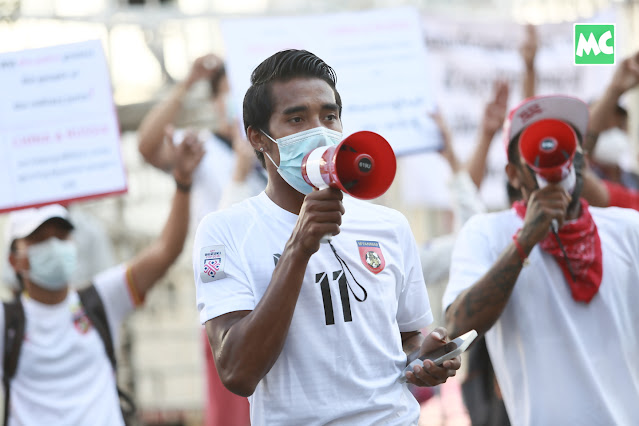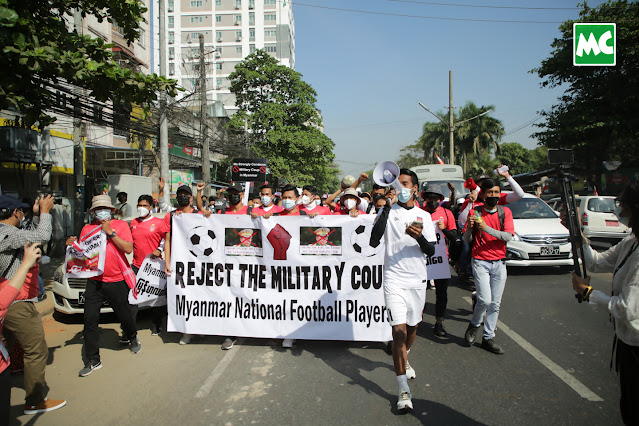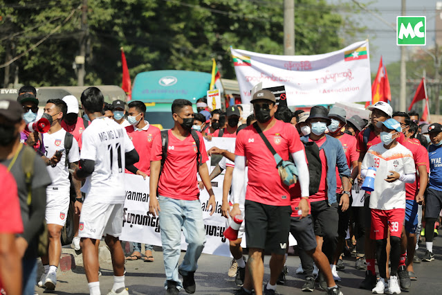 စစ်အာဏာရှင် စနစ် လက်မခံကြောင်း ဆန္ဒထုတ်ဖော်ခဲ့တဲ့ လက်ရွေးစင် ဘောလုံးကစားသမားများ Posted: 12 Feb 2021 01:10 AM PST မြန်မာ့လက်ရွေးစင် ဘောလုံးကစားသမားများ နှင့် ရန်ကုန်မြို့ အပျော်တမ်း ဘောလုံး ဝါသနာရှင်များ အဖွဲ့တို့ စုပေါင်းပြီး ဒီကနေ့၊ ဖေဖော်ဝါရီလ (၁၂) ရက်နေ့၊ တပ်မတော် အာဏာသိမ်းမှု လူထု ဆန့်ကျင်ဆန္ဒပြပွဲ (၇) ရက်မြောက်နေ့တွင် ပြည်သူတွေ နဲ့အတူ ချီတက် ဆန္ဒထုတ်ဖော်ခဲ့ကြပါတယ်။ အာဏာသိမ်းမှုကို ရုံးမတက်ပဲ ရုန်းထွက် ဆန့်ကျင်ကြရေး၊ စစ်အာဏာရှင် စနစ်ကို လက်မခံကြောင်း၊ ဒီမိုကရေစီ ပြန်လည်ရရှိရေး နှင့် ဒီမိုကရေစီ နည်းအရ တင်မြှောက်ထားတဲ့ ခေါင်းဆောင်တွေ ပြန်လွှတ်ပေးရန် တောင်းဆိုခဲ့ကြပါတယ်။ #MyanmarNationalFootballPlayer #MgMgLwin #KyawMinOo #KyawZinHtet #SaveMyanmar #MyanmarCDM |