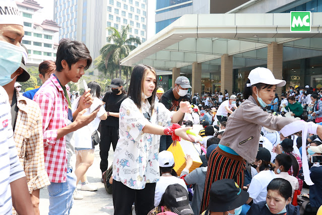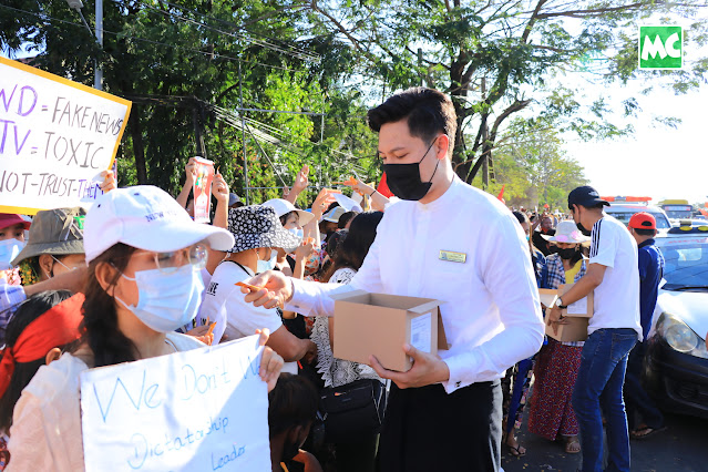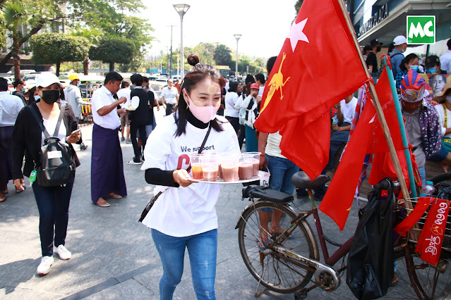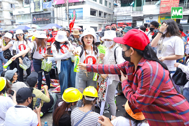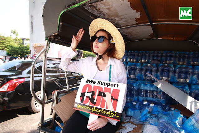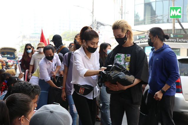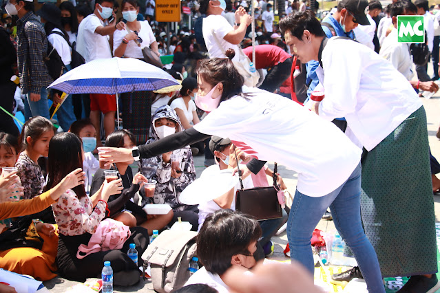 ဆန္ဒပြ ပြည်သူတွေ ကို အချိုရည် လှူခဲ့တဲ့ MRTV-4 သရုပ်ဆောင်များ Posted: 26 Feb 2021 02:16 AM PST MRTV- 4 ဇာတ်လမ်းတွဲ သရုပ်ဆောင်များ ဖြစ်ကြတဲ့ ခေးဆက်သွင်၊ နေခြည်ရွှန်းလက်၊ သွန်းသစ္စာဇော် နှင့် အခြား အနုပညာများ စုပေါင်းပြီး ဖေဖော်ဝါရီလ (၂၅) ရက်နေ့တွင် ရန်ကုန်၊ Myanmar Plaza အရှေ့မှာ ငြိမ်းချမ်းစွာ ဆန္ဒထုတ်ဖော် ခဲ့ကြပါတယ်။ ဆန္ဒပြ ပြည်သူများ အတွက်လည်း အချိုရည် ဝေငှ လှူဒါန်းခဲ့ပါတယ်။ By Myanmar Celebrity #MyanmarActress #KhaySettThwin #NayChiShoonLak #ThoonThitsarZaw #WyneShweYee #MyanmarProtest |