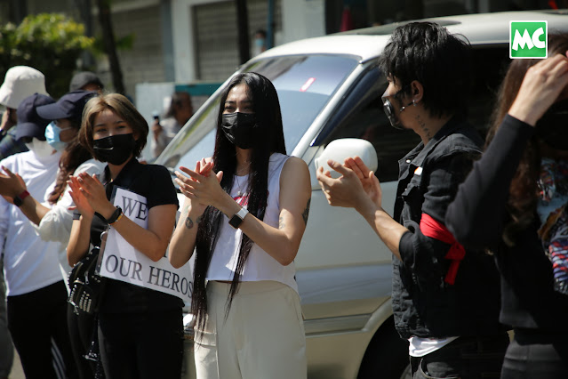 ဗဟိုဘဏ် ဝန်ထမ်းတွေကို အနုပညာရှင်များ မေတ္တာရပ်ခံ Posted: 16 Feb 2021 11:51 PM PST ရုပ်ရှင်၊ ဂီတ အနုပညာရှင်များ နှင့် မိတ်ကပ် ပညာရှင်များ စုပေါင်းပြီး ဖေဖော်ဝါရီလ (၁၅) ရက်နေ့၊ ရန်ကုန်၊ ဗဟိုဘဏ်ရှေ့မှာ ပြည်သူတွေ နဲ့အတူ ဆန္ဒ ထုတ်ဖော်ခဲ့ကြပြီး ပြည်သူ့ ဝန်ထမ်းတွေ အားလုံး ပြည်သူတွေ နဲ့ အတူတူ ပါဝင် ဆန္ဒထုတ်ဖော်ပေးကြဖို့ တောင်းဆို မေတ္တာ ရပ်ခံခဲ့ကြသလို ရန်ကုန်၊ အမေရိကန် သံရုံးရှေ့မှာလည်း ဆန္ဒ ထုတ်ဖော်ခဲ့ကြပါတယ်။ #PyayTiOo #EaindraKyawZin #PaingPhyoeThu #AyeMyatThu #NyeinThaw #HsaungWutyeeMay #MayOo #KharRa #MyatNoeAye #SaveMyanmar #MyanmarDemocracy |