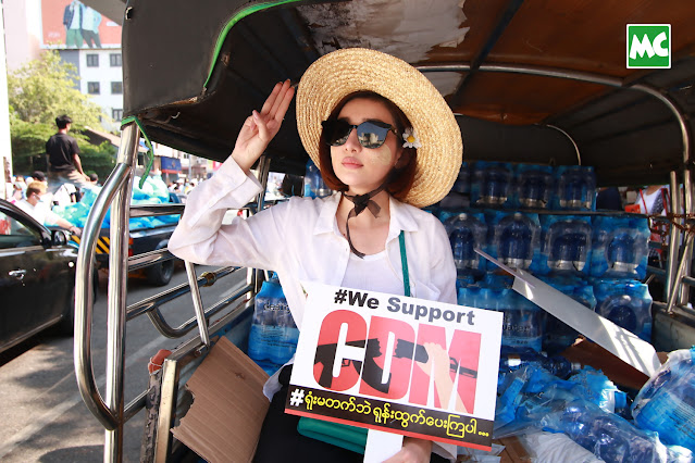 ဆန္ဒပြ ပြည်သူများကို အားဖြည့် ဖျော်ဖြေခဲ့တဲ့ အေးမြဖြူ Posted: 12 Feb 2021 09:46 PM PST အဆိုတော် အေးမြဖြူ က လင်္ကာဒီပ သံစုံတီးဝိုင်း အဖွဲ့ နဲ့အတူ ဖေဖော်ဝါရီလ (၁၂) ရက်နေ့၊ လူထု ဆန္ဒပြပွဲ (၇) ရက်မြောက်နေ့တွင် ရန်ကုန်မြို့ တစ်လျှောက် ကား နဲ့ လှည့်လည်ပြီး ဆန္ဒပြ ပြည်သူများ၊ CDM လုပ်နေတဲ့ အစိုးရဝန်ထမ်းများကို အားဖြည့်တဲ့ အနေနဲ့ သီချင်းများဖြင့် သီဆို ဖျော်ဖြေပေးခဲ့ပါတယ်။
