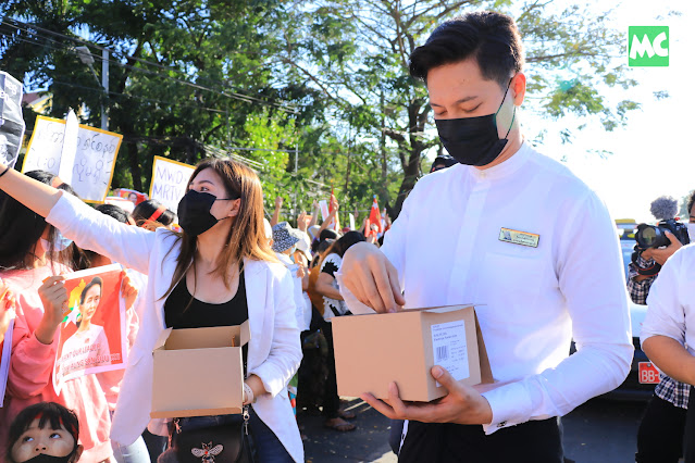 ဆန္ဒပြ ပြည်သူတွေ အတွက် လှူဒါန်းခဲ့တဲ့ အနုပညာရှင်များ Posted: 12 Feb 2021 04:37 AM PST သရုပ်ဆောင် ဇွဲနိုင်ဝင်း၊ အောင်ဇော်မင်း နှင့် အခြား အနုပညာရှင် အဖွဲ့သားများက စုပေါင်းပြီး ဒီကနေ့၊ ဖေဖော်ဝါရီလ (၁၂) ရက်နေ့၊ စစ်အာဏာသိမ်းမှု ဆန့်ကျင် လူထု ဆန္ဒပြပွဲ (၇) ရက်မြောက်နေ့တွင် ရန်ကုန်၊ Myanmar Plaza Shopping Center အရှေ့မှာ ဆန္ဒပြနေတဲ့ ပြည်သူများကို ရေသန့်ဗူး နှင့် မုန့် များ ထောက်ပံ့ လှူဒါန်းခဲ့ ကြပါတယ်။ ဆန္ဒပြ ပြည်သူတွေ ရဲ့ အရေးပေါ် ကျန်းမာရေး ကိစ္စများ အတွက်လည်း ကူညီပေးခဲ့ကြပါတယ်။ #MyanmarActor #ZweNaingWin #AungZawMin #ZawZawAung #KaungMyat #SaveMyanmar #MyanmarCelebrityDonations |