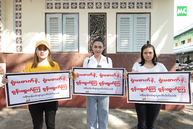 ပြည်သူတွေ နဲ့အတူ ဆန္ဒထုတ်ဖော်ခဲ့ကြတဲ့ အနုပညာရှင်များ Posted: 12 Feb 2021 02:25 AM PST သရုပ်ဆောင် လွင်မိုး ၊ လူမင်း ၊ မင်းမော်ကွန်း ၊ သားညီ ၊ နေမျိုးအောင်၊ ဖိုးချစ်၊ ရဲလေး၊ သက်မွန်မြင့်၊ အေးမြတ်သူ ၊ မိုးဟေကို ၊ ခင်လေးနွယ်၊ ပိုးကြာဖြူခင်၊ မေမြင့်မိုရ်၊ နန်းဆုရတီစိုး နှင့် အနုပညာရှင် စုပေါင်းပြီး ဖေဖော်ဝါရီလ (၁၁) ရက် ၊ တပ်မတော် အာဏာသိမ်းမှု လူထု ဆန့်ကျင်ဆန္ဒပြပွဲ (၆) ရက်မြောက်နေ့တွင် ရန်ကုန်၊ Myanmar Plaza Shopping Center အရှေ့တွင် ပြည်သူ နဲ့အတူ ဆန္ဒ ထုတ်ဖော်ခဲ့ကြပါတယ်။ ၂၀၂၀ ရွေးကောက်ပွဲတွင် အနိုင်ရရှိခဲ့သော NLD အစိုးရအား ကြိုဆို ထောက်ခံကြောင်း၊ အာဏာသိမ်းမှုကို ရုံးမတက်ပဲ ရုန်းထွက် ဆန့်ကျင်ကြဖို့ နှင့် စစ်အာဏာရှင် စနစ်ကို အတူတကွ တွန်းလှန်ကြဖို့ တိုက်တွန်း ဆော်ဩခဲ့ကြပါတယ်။ #LuMin #LwinMoe #MinMawKun #KhinLayNwe #AyeMyatThu #SaveMyanmar #MyanmarCDM #DirectorWyne #ThetMonMyint #MoeHayKo #TharNyi #NayMyoAung #YeLay #PoeKyarPhyuKhin #MayMyintMo #NanSuYatiSoe #PhoeChit |