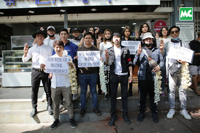 ရုံးမတက်ဘဲ ရုန်းထွက်ကြဖို့ အနုပညာရှင်များ စုပေါင်း တိုက်တွန်း Posted: 15 Feb 2021 07:58 PM PST သရုပ်ဆောင် ဇင်ဝိုင်း ၊ ရန်အောင်၊ လွင်မိုး ၊ လူမင်း ၊ မင်းမော်ကွန်း ၊ ကိုပေါက်၊ ညီနန္ဒ ၊ ညီထွဋ်ခေါင်၊ ကျော်ထူး နှင့် ရုပ်ရှင် ၊ ဂီတ၊ သဘင် အနုပညာရှင်များစွာ စုပေါင်းပြီး ဒီကနေ့၊ ဖေဖော်ဝါရီလ (၁၅) ရက်နေ့တွင် ရန်ကုန်၊ ဗဟိုဘဏ် နှင့် မြန်မာ့ စီးပွားရေးဘဏ် အရှေ့မှာ ပြည်သူ့ ဝန်ထမ်းများကို Civil Disobedience Movement (CDM) မှာ ပူးပေါင်းကြဖို့ သွားရောက် မေတ္တာရပ်ခံ ဆန္ဒထုတ်ဖော် ခဲ့ကြပါတယ်။ #ZinWyne #LwinMoe #MinMawKunn #LuMin #NyiNanda #NyiHtutKhaung #KyawHtoo #SaveMyanmar #MyanmarCDM |