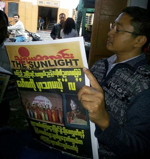 Posted: 21 Oct 2013 04:27 AM PDT ရန္ကုန္ၿမဳိ႕ ကမာၻေအး ဘုရားလမ္းေပၚရွိ သူရိယအလင္း ဂ်ာနယ္တိုက္ကို လူ ၁၅ ဦးခန္႔ ဝင္ေရာက္ၿပီး ႐ုံးခန္းတြင္းရွိ ကြန္ပ်ဴတာ System ပုံး ၁၄လုံးႏွင့္ CCTV တစ္လုံးကို ျဖဳတ္ယူသြားေၾကာင္း ယင္းဂ်ာနယ္ အမႈေဆာင္ အရာရွိခ်ဳပ္ ဦးမိုးဟိန္း၏ သတင္းစာရွင္းလင္းပြဲတြင္ ေျပာၾကားမႈမ်ားကို ယင္းတိုက္၏ ထုတ္ေဝသူႏွင့္ အယ္ဒီတာမ်ားက ကန္႔ကြက္ေၾကာင္း သေဘာထား ေၾကညာခ်က္ကို ႏိုင္ငံပိုင္ သတင္းစာမ်ားတြင္ ၂၀၁၃ ခုႏွစ္ ေအာက္တိုဘာ ၂၁ ရက္ေန႔တြင္ ေဖာ္ျပသြားမည္ ျဖစ္ေၾကာင္း သူရိယအလင္းဂ်ာနယ္ ထုတ္ေဝသူ ဦးယုႏိုင္က ေျပာၾကားသည္။--- |