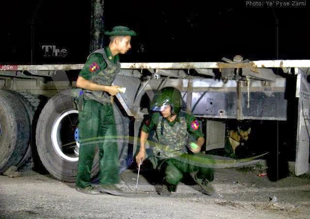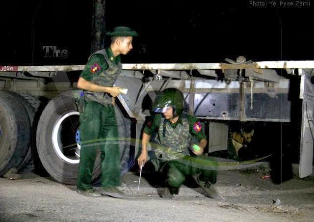Posted: 19 Oct 2013 01:58 PM PDT ပဲခူးတိုင္းေဒသႀကီး ဒိုက္ဦးၿမဳိ႕နယ္ အမွတ္ (၃) ဝါဆိုရပ္ကြက္ ၿမဳိ႕ပတ္လမ္း အမွတ္ (၁၀) အေျခခံပညာ အထက္တန္း ေက်ာင္းေရွ႕ လမ္းေဘးျမက္ေတာတြင္ ေအာက္တိုဘာလ ၁၈ ရက္ နံနက္ ၉ နာရီ ခန္႔က ၾကြပ္ၾကြပ္အိတ္ အနက္ေရာင္ျဖင့္ ထည့္ထားေသာ အထုပ္ေၾကာင့္ ယင္းၿမဳိ႕ တြင္ ပထမဦးဆုံးအႀကိမ္ ဗုံးလန္႔မႈျဖစ္ပြားခဲ့ေၾကာင္း ယင္းရပ္ကြက္ ေနထိုင္သူမ်ားထံမွ သိရွိရသည္။ လမ္းေဘးတြင္ ငါးမွ်ားသူတစ္ဦးက ငါးထည့္ထားေသာအထုပ္ျဖင့္ ယင္း အနက္ေရာင္အိတ္ထုပ္ကို မွားယူမိ၍ ဖြင့္ၾကည့္ရာမွ အိတ္အထပ္ထပ္ ထုပ္ထားေသာ အထုပ္ျဖစ္ကာ ဝါယာႀကဳိးႏွစ္စ ထြက္ေနေသာေၾကာင့္ ရပ္ကြက္အုပ္ခ်ဳပ္ေရးမွဴး ထံ အေၾကာင္းၾကားခဲ့ေၾကာင္း စတင္ေတြ႔ရွိသူ ဦးေမာင္ေဌးက ေျပာၾကားသည္။ --- |